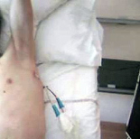 Στη συνέχεια έγινε εισαγωγή στη χειρουργική κλινική όπου ετέθη συσκευή παροχέτευσης θώρακα.